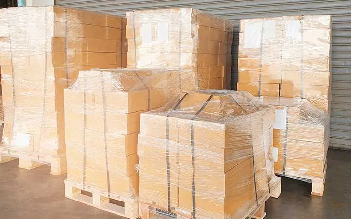 Für die Sicherung der Güter kommen weitere Hilfsmittel zum Einsatz. Mit Stretchfolie