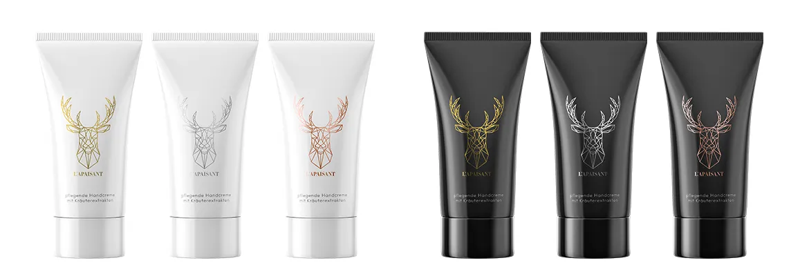 Viele Veredelungen: Neben matten und glänzenden Lackierungen, die das Druckbild noch attraktiver machen und die Oberfläche des Laminats vor Beschädigungen schützen, können unsere Laminattuben zusätzlich mit Metallic-Folie veredelt werden.