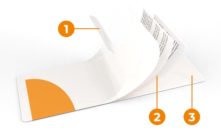 Labelprint24 bietet Ihnen hochwertige Booklet-Etiketten, deren Aufbau aus einem selbstklebenden Trägeretikett, einem Papier-Booklet mit bis zu 20 Seiten und einer Laminatfolie besteht. Das Trägeretikett wird aus PP-Folie oder Etikettenpapier gefertigt und kann mit permanentem oder wiederablösbarem Kleber ausgestattet werden. Das Papier-Booklet wird in Grammaturen von 60 bis 135 g gedruckt und gefalzt - eine Falzleimung ist ab 8 Seiten möglich.