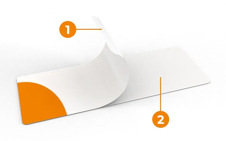 Sandwichetiketten bestehen aus einem selbstklebenden Trägeretikett und einer weiteren Etikettenlage, die sich abziehen und bei Bedarf wieder aufkleben lassen. Das Trägeretikett wird aus blickdichtem Etikettenpapier, PP-Folie oder PE-Folie gefertigt und ist mit permanent haftendem Klebstoff erhältlich. Das Obermaterial aus glänzender PP- oder PE-Folie kann individuell gestaltet und bedruckt werden.