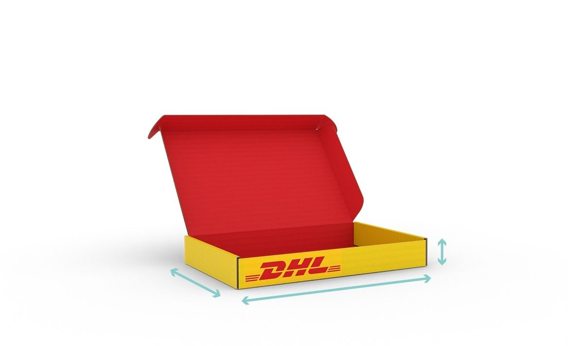 DHL Versandkartons im Wunschformat werden exakt nach Ihren Spezifikationen gefertigt und können innen und außen in Ihrem Design bedruckt werden. Bei der Konfiguration des Kartons ist zu beachten, dass die verschiedenen Versandoptionen von DHL bestimmte Mindest- und Maximalmaße haben. Ebenso hat jede Versandart ein bestimmtes Maximalgewicht, das nicht überschritten werden darf. Folgende Varianten sind für den Versand mit einem DHL Karton FEFCO 0427 geeignet: