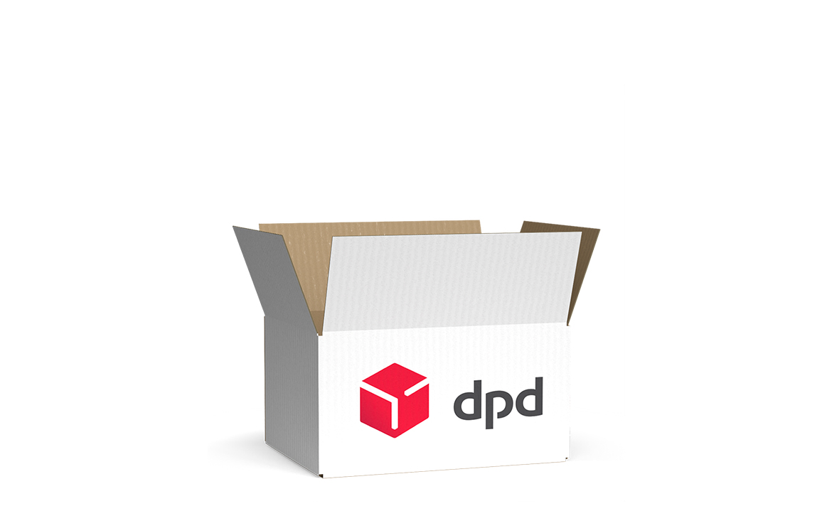 DPD Paket von Labelprint24 – Faltkartons aus Wellpappe mit Außenklappen auf Stoß in standardisierten Paketformaten für den DPD-Versand. Verschluss per Klebeband oder Umreifungsband, personalisiert bedruckt oder unbedruckt erhältlich.