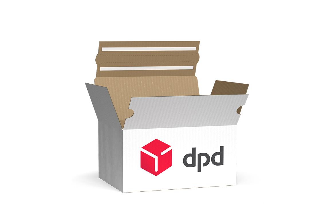 DPD Paket von Labelprint24 – Wellpapp-Versandkarton mit Automatikboden und zwei Klebestreifen für schnelles Verpacken und Versenden ohne Zusatzklebeband. Aufreißstreifen und ein selbstverriegelnder Boden sorgen für sicheres Handling. In Standardmaßen mit Ihrem Druckmotiv oder unbedruckt erhältlich.