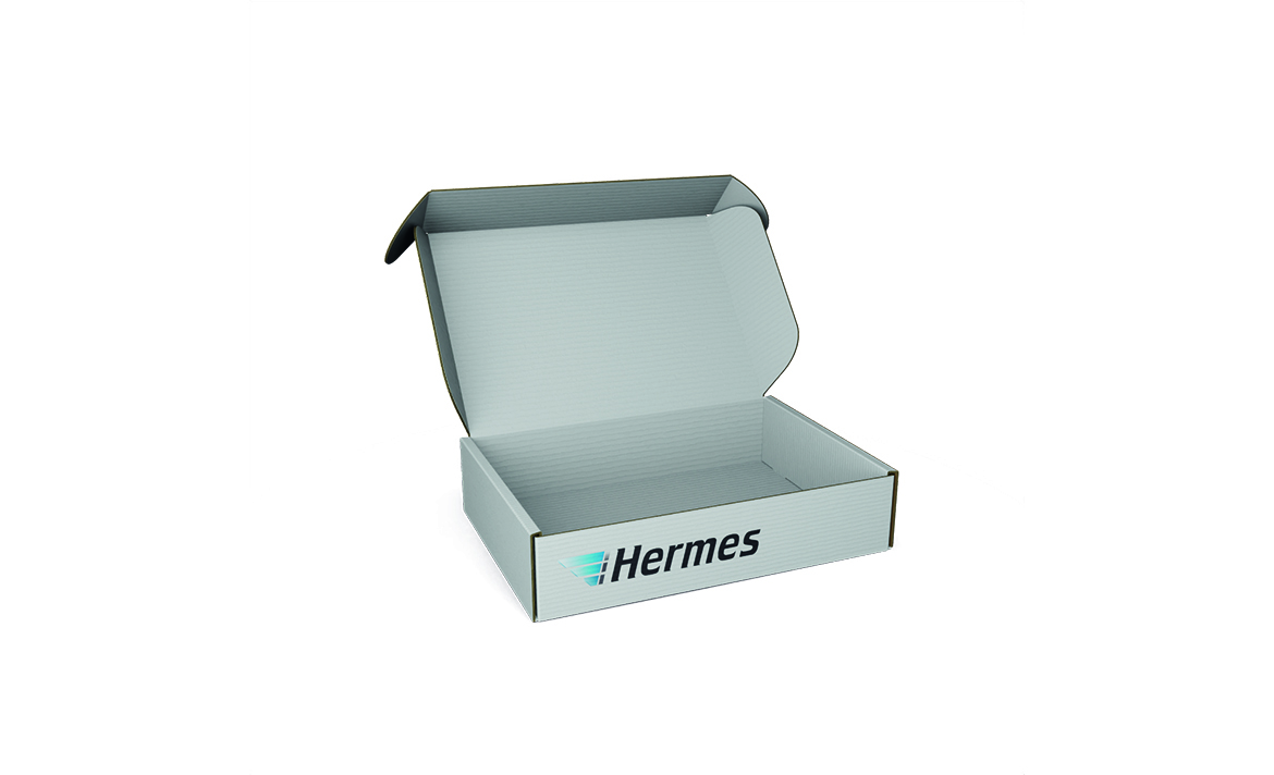 Hermes Karton von Labelprint24 – individualisierbare Klappdeckelkartons aus E-Welle in bewährten Paketformaten für kosteneffizienten Hermes-Versand. Außen vollflächig bedruckt oder unbedruckt lieferbar.