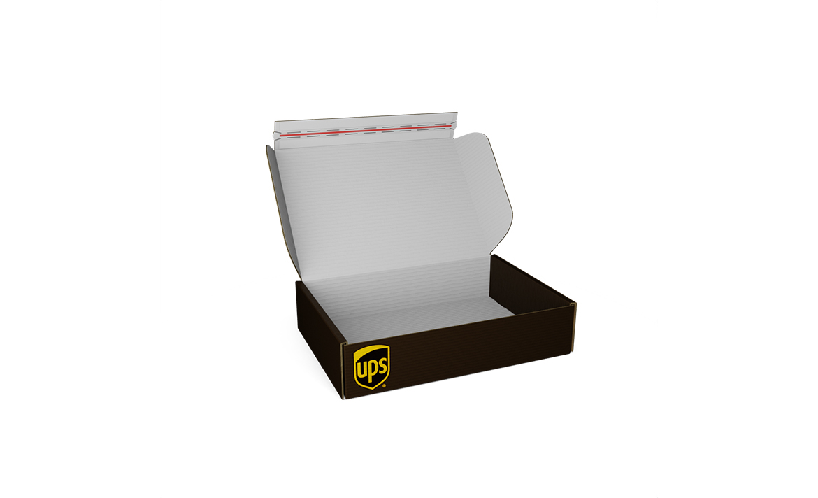UPS Karton mit Klebestreifen und Aufreißlasche von Labelprint24 – leichte, stabile Klappdeckelkartons aus Wellpappe in Standardformaten für professionellen UPS-Versand, mit Ihrem Druckmotiv oder unbedruckt erhältlich.