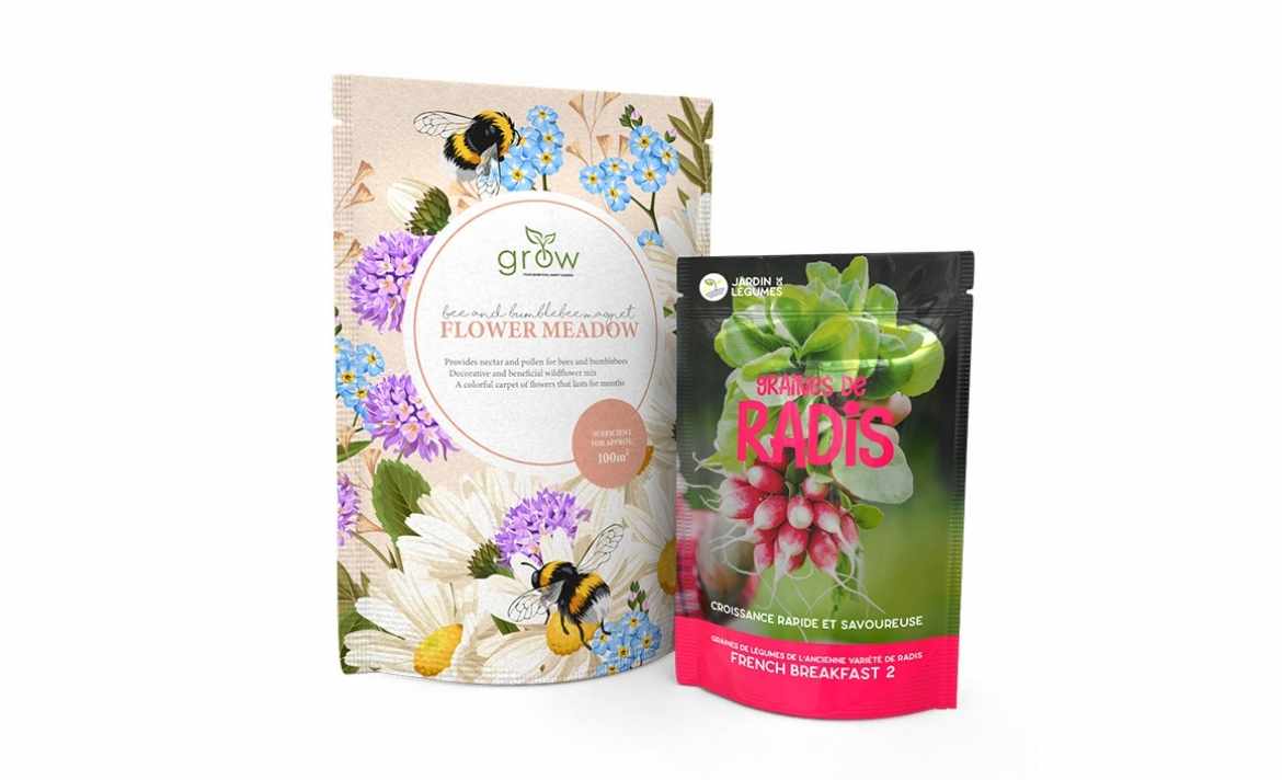 Die Verpackung für Samen ist weit mehr als nur ein Schutz für die Lagerung. Sie verkörpert Ihre Markenidentität, informiert Hobby- und Profi-Gärtner und beeinflusst die Kaufentscheidung. Im Regal zieht ein individuelles Design der Produktverpackung mit hochwertiger Verarbeitung sofort die Aufmerksamkeit auf sich.