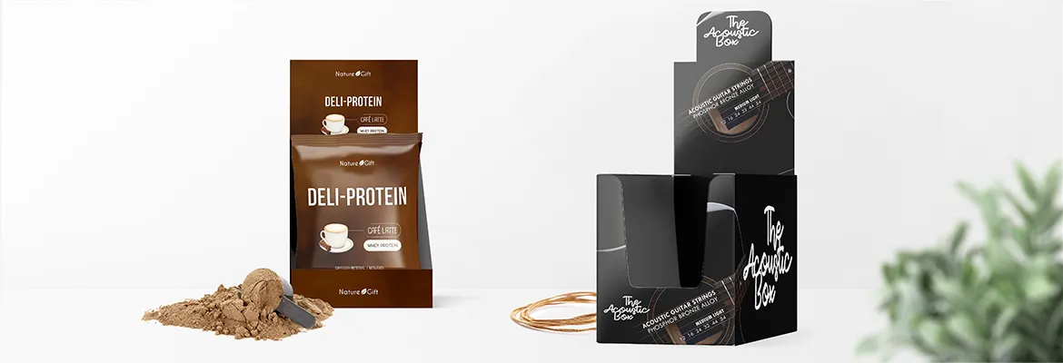 Do you want your counter display to attract extra attention at the POS? Then you have the option of using special inlays and inserts that are adapted to the product. Another option is to use custom cardboard blanks to separate products in the counter display or labels to mark products.