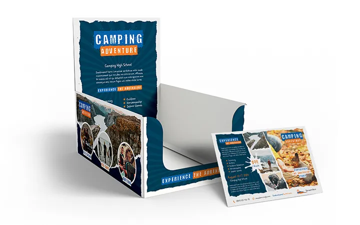 As product packaging for cards, flyers or brochures: Counter displays are suitable for many different products to set them perfectly in scene. Whether bookstore, kiosk or grocery store, you can find them in a variety of places. Determine size, dimension, material and finishing freely in our online calculator.