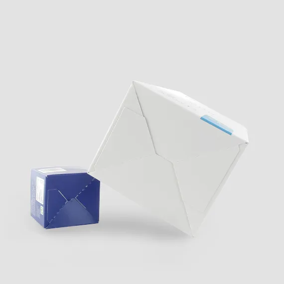 Are you looking for a folding carton with tuck-in flap and automatic bottom? With glued bottom flaps that close automatically when standing upright? Discover the folding boxes with automatic bottom from Labelprint24.com!