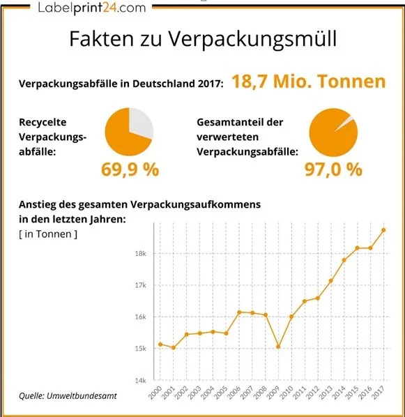 - More than 18 million tonnes of packaging waste are generated in Germany every year.