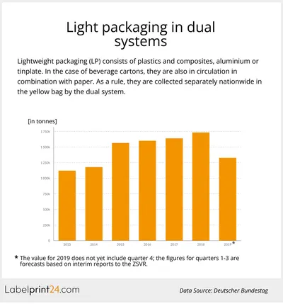Even lightweight packaging recorded another increase of 4.8 percent in the fourth quarter. However, at the time of the survey (as of October 2019), this was still not enough to reach the target of 1.85 million tons.