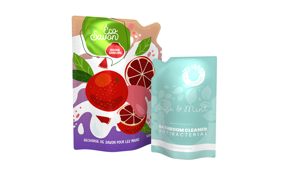Sustainable refill pouches are designed to allow the user to reuse the primary container (bottle, dispenser, roll-on, spray) by inserting an economical and environmentally friendly refill. It's a sustainable dispensing system designed to limit waste while maintaining optimal presentation quality.
