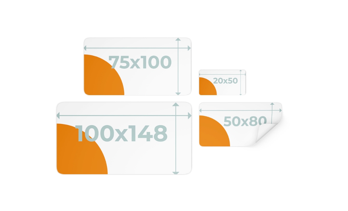 Nombreux formats standard de 20 × 50 mm à 100 × 148 mm – parfaitement adaptés aux bouteilles, emballages ou cartons d'expédition !