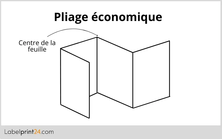 Dans le cas du pliage économique, les bords pliés sont disposés parallèlement les uns aux autres. Après l'impression de la notice, le premier bord de pliage est placé au milieu de la feuille, puis la notice est pliée et à nouveau pliée au milieu dans cet état. Ce processus est répété en fonction du nombre de pages, tous les plis allant dans la même direction.