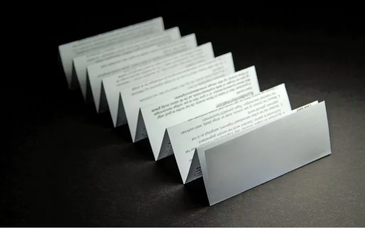 Qu'elles soient plane ou à petits plis, je suis votre conseillère experte en notices d'emballage. Les notices en papier fin sont disponibles dans une variété de types de plis et de grammages, parfaitement adaptées aux besoins de secteurs tels que la pharmacie, les cosmétiques et bien d'autres.