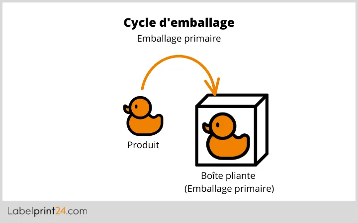 L'emballage principal est en contact direct avec le produit et est appelé matériau d'emballage primaire (ou emballage primaire). Par exemple, cela inclut les boîtes, les films, les bouteilles, les tubes et les sachets. Le matériau d'emballage primaire entoure donc le produit réel.
