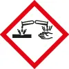 ![]() | Deux éprouvettes, endommageant une surface et une main -> Corrosif | Substances / mélanges corrosifs pour les métaux. Substances / mélanges irritants ou corrosifs pour la peau / les yeux | GHS05 | Selon la classification : Danger ou Attention |