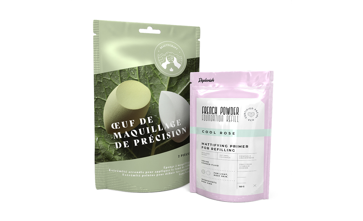 Le doypack est un emballage souple avec fond stable, idéal pour contenir des produits de maquillage liquides, semi-solides ou en poudre (fonds de teint, gels pailletés, pigments, nettoyants pinceaux…). Il permet un conditionnement pratique, une excellente barrière de protection et une présentation attrayante.